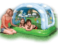子どもが大喜びの滑り台のついたビニールプールにはINTEX(インテックス)の遊び心に溢れている「レインボーリング」 「ジャングル」「ゲートウェイ ファン」などの『プレイセンタープール シリーズ』。